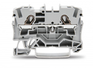 —2004-1201 2-проводные проходные клеммы; 4 mm2; подходят для исполнений Ex e II; боковая и центральная маркировка; для DIN-рейки 35 x 15 и 35 x 7,5; Push-in CAGE CLAMP