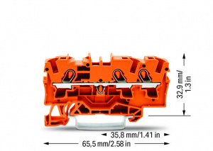2004-1302 3-проводные проходные клеммы; 4 mm2; подходят для исполнений Ex e II; боковая и центральная маркировка; для DIN-рейки 35 x 15 и 35 x 7,5; Push-in CAGE CLAMP