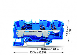 2006-1304 3-проводные проходные клеммы; 3; Для исполнений Ex e II и Ex i; боковая и центральная маркировка; для DIN-рейки 35 x 15 и 35 x 7,5; Push-in CAGE CLAMP
