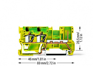 —769-257 2-проводные / 1-контактные базовые клеммы с заземлением; для DIN-рейки 35 x 15 и 35 x 7,5; 4 mm2; CAGE CLAMP