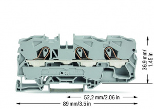 2010-1301 3-проводные проходные клеммы; 10 мм2; подходят для исполнений Ex e II; боковая и центральная маркировка; для DIN-рейки 35 x 15 и 35 x 7,5; Push-in CAGE CLAMP
