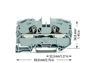 2016-1201 2-проводные проходные клеммы; 16 мм2; подходят для исполнений Ex e II; боковая и центральная маркировка; для DIN-рейки 35 x 15 и 35 x 7,5; Push-in CAGE CLAMP