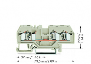 281-993 3-проводные проходные клеммы; 4 mm2; подходят для исполнений Ex e II; центральная маркировка; для DIN-рейки 35 x 15 и 35 x 7,5; CAGE CLAMP