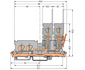 —769-211 2-проводные / 2-контактные базовые клеммы; с контактом для экрана; для DIN-рейки 35 x 15 и 35 x 7,5; 4 mm2; CAGE CLAMP