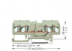 280-994 4-проводные проходные клеммы; 2,5 мм2; подходят для исполнений Ex e II; центральная маркировка; для DIN-рейки 35 x 15 и 35 x 7,5; CAGE CLAMP
