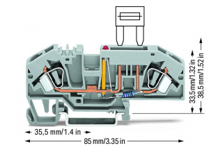 282-698/281-413 2-проводные клеммы с держ. для предохранителя; для автом. плоских предохранителей; с возможностью тестирования; со светодиодной индикацией перегорания предохранителя; 24 В; для DIN-рейки 35 x 15 и 35 x 7,5; 3; CAGE CLAMP