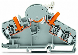 282-860 3-проводные клеммы с размыкателем / тестовые клеммы; например, для цепей трансформатора напряжения; с защищенными от случайных прикосновений тестовыми разъемами; для тестового штекера 24 мм; для DIN-рейки 35 x 15 и 35 x 7,5; 3; CAGE CLAMP