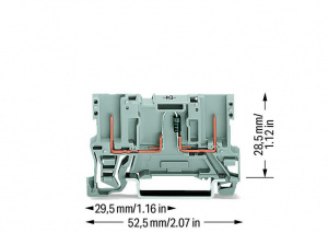 769-228/281-411 2-контактная компонентная несущая клемма; с диодом 1N4007; анод справа; для DIN-рейки 35 x 15 и 35 x 7,5; 4 mm2