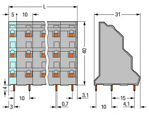 —737-708 Трехуровневая клемма на печатную плату; 2,5 мм2; Шаг контактов 10 мм; 3 x 8-полюсов; CAGE CLAMP
