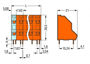 736-666 Двухуровневая клемма на печатную плату; 2,5 мм2; Шаг контактов 7,62 мм; 2 x 16-полюсов; CAGE CLAMP