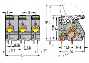 - Сильноточные клеммные колодки с зажимами CAGE CLAMP®, с рабочими рычагами