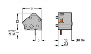 236-733 Наборная клемма на печатную плату; 2,5 мм2; Шаг контактов 10/10,16 мм; 1-пол.; CAGE CLAMP; опция объединения