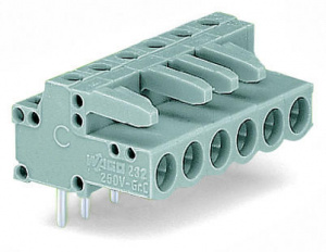 —232-237 Розетка под пайку THT; 0.6 x 1.0 mm solder pin; угловые; Шаг контактов 5 мм; 7-пол.