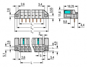 —722-238/047-000 Розетка под пайку THT; 0.6 x 1.0 mm solder pin; угловые; 100% защита от неправильного подсоединения; Проходной фланец; Шаг контактов 5 мм; 8-пол.