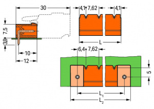 231-932/001-000 Вилка THT; 1.0 x 1.0 mm solder pin; угловые; Шаг контактов 7,62 мм; 2-пол.