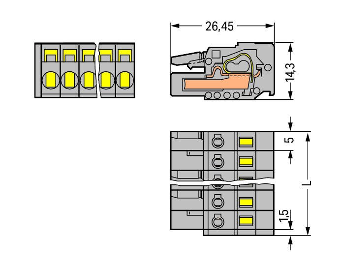 —231-102/026-000 1-проводниковая розетка; 2,5 мм2; Шаг контактов 5 мм; 2-пол.