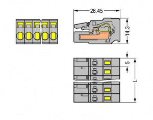 —231-102/102-000 1-проводниковая розетка; со встроенной торцевой пластиной; 2,5 мм2; Шаг контактов 5 мм; 2-пол.