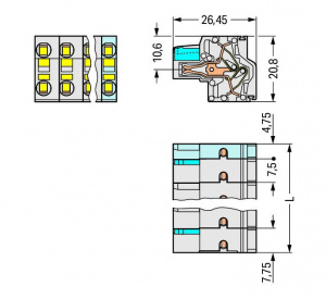 —721-2203/026-000 2-проводная розетка; 100% защита от неправильного подсоединения; 2,5 мм2; Шаг контактов 7,5 мм; 3-пол.