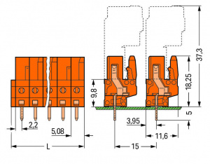 —232-162 Розетка под пайку THT; 0.6 x 1.0 mm solder pin; прямые; Шаг контактов 5,08 мм; 2-пол.